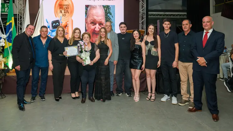 Homenageados recebem reconhecimento da ACIJA por contribuições ao desenvolvimento econômico e social do município. Crédito: Divulgação A Associação Comercial, Industrial e de Serviços de Jacutinga (ACIJA) realizou a Noite dos Melhores do Ano 2025, evento que destacou empresas, profissionais e p